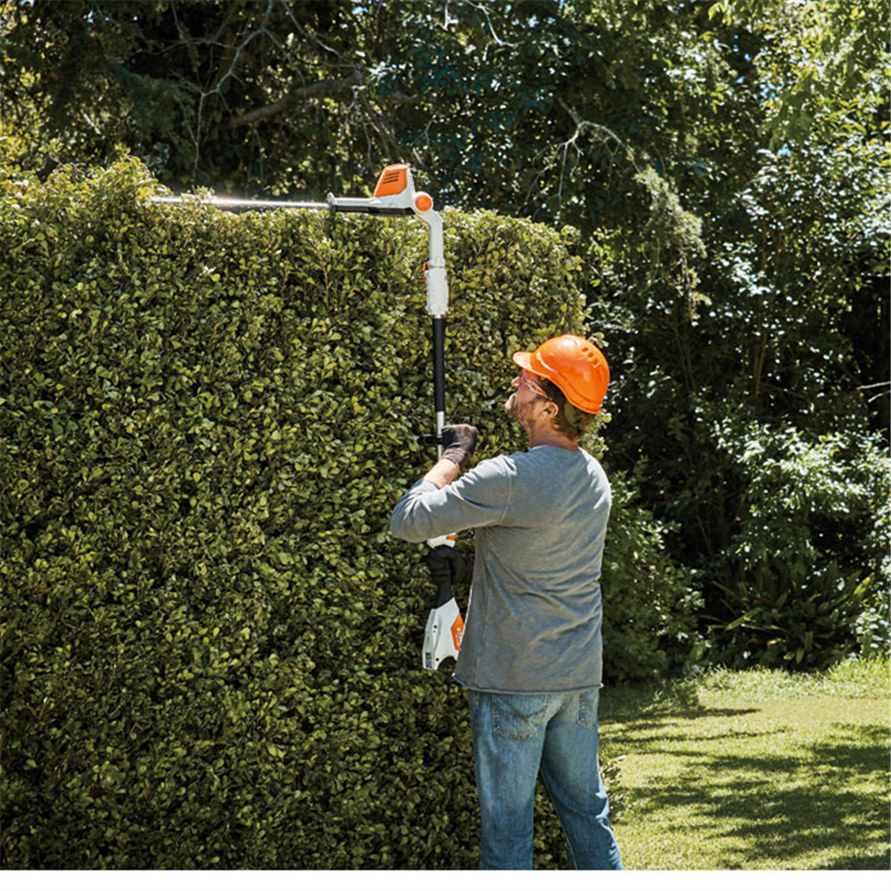 Lagane makaze za živu ogradu za rezanje viših živih ograda i ukrasnih grmova u vašem vrtu. Jednostrani noževi u obliku kapljice ugao noža podesiv po stepenima od -45 do 90 deljiva osovina za lakši transport. Transportna dužina 115 cm. Uredjaj je bez baterije i punjaca Težina kg 1) 3. 8 Dužina noža 45 cm Napon 36 V Max. debljina rezanja 23 mm Zubni razmak 30 mm Nema izduvnih gasova Litijum jonska tehnologija Smanjena buka i vibracije Lagane i ergonomične Mogućnost rastavljanja na sredini vratila Geometrija noža sa kapljičastim oblikom Podešavanje ugla noževa bez alata Integrisana zaštita na vrhu noževa Mehanička kočnica za zaustavljanje noževa posle gašenja Napomena: Maksimalna količina za poručivanje i prodaju je 3 kom.