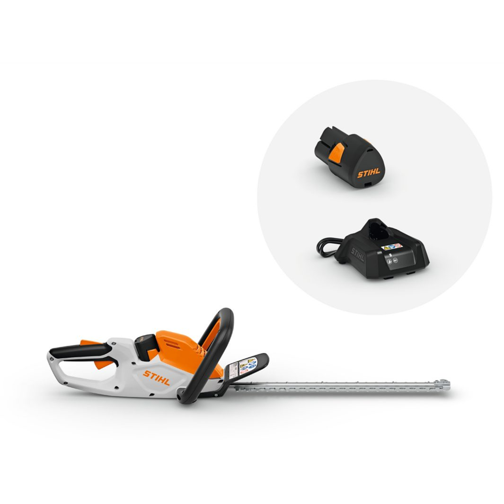 HSA 30 baterijske makaze za živu ogradu u kompletu sa AS 2 baterijom i AL 1 standardnim punjačem: za udobno orezivanje malih i srednjih živih ograda u domaćinstvu Ultra lagan i tih STIHL HSA 30 baterijski trimer za živu ogradu impresionira svojim kompaktnim i ergonomskim dizajnom i savršenim balansom kada orezujete živu ogradu i održavate bašte u kućnim uslovima.