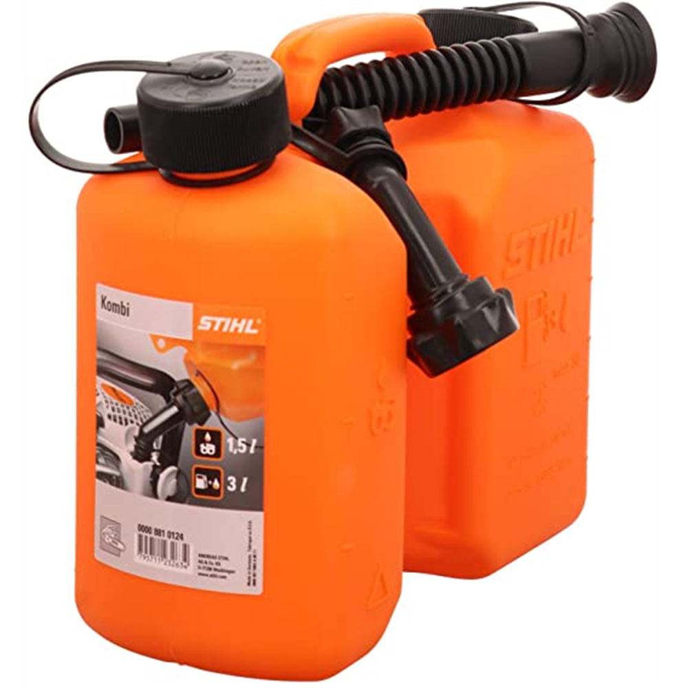 STIHL kombinovani kanisteri su efektivno rešenjeako radite sa vašom STIHL motornom testerom na benzinski pogon u dužim vremenskim periodima. Profesionalci i domaći korisnici podjednako mogu da pune svoje motorne testere ili dodaju ulje iz robusnog iz UN odobrenog kanistera u bilo kom trenutku, preko dostavljenog otvora. Zahvaljujući poklopcima koji nisu predviđeni za decu, tečnosti se adekvatno skladište u STIHL kombinovanom kanisteru. Kombinovani kanisteri napravljeni od transparentne plastike omogućavaju vam da pratire nivo napunjenosti u svakom trenutku bez potrebe da otvarate poklopac. Preporučujemo praktični STIHL sistem za punjenje goriva i STIHL sistem za punjenje ulja za lanac kao opcione dodatke za kombinovane kanistere, za lako i čisto doziranje i punjenje goriva ili ulja.