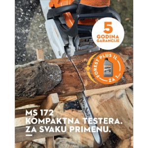Kada je u pitanju sečenje drva za ogrev ili održavanje terena, kompaktna benzinska motorna testera STIHL MS 172 nudi vam fleksibilnu benzinsku testeru, bilo da ste domaći korisnik ili profesionalac u hortikulturi i održavanju pejzaža Sa MS 172 možete čak obarati i manja drveća.
