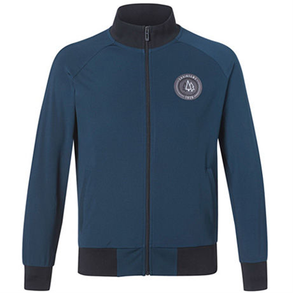 Muška jakna za trening 042021000 Plava boja 95% poliester 5% elastan stajaća kragna i raglan rukavi crni patent zatvarač (STIHL privezak za ključeve) džepovi sa letkom amblem „MOTORNE TESTERE“ na grudima.
