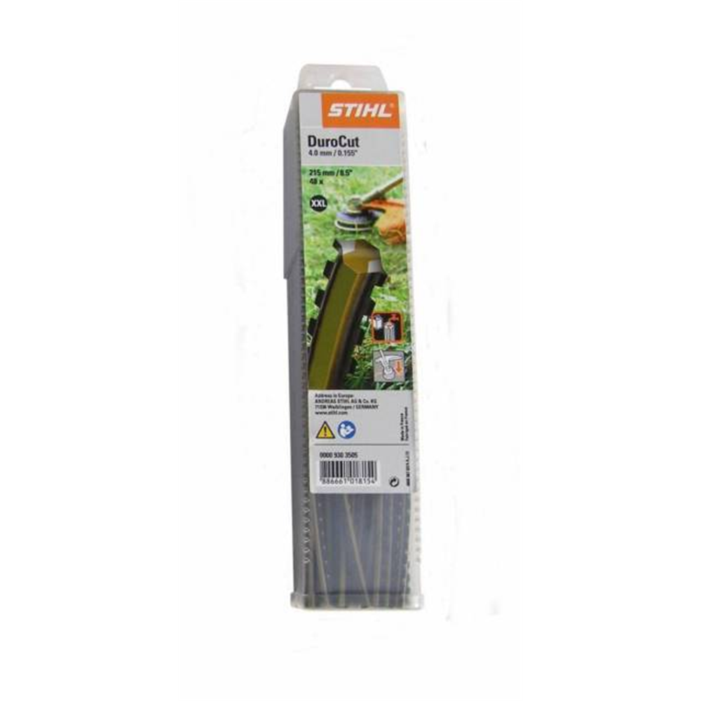 za STIHL DuroCut glave za košnjenje su posebno pogodni za sečenje žilave vegetacije. Sa STIHL zamenskim nitima za košnenje visokih performansi, možete čak pažljivo da kosite tvrdu i gusto rastuću travu, postižući savršeno čiste površine i ivice. Zahvaljujući svojoj kompoziciji otpornoj na habanje napravljenoj od otpornog poliamida, niti su posebno izdržljive, čak i za zahtevne zadatke. Komadi DuroCut niti mogu se koristiti u DuroCut glavama za košnjenje sa dva ili četiri reda i dostupni su u četiri različite verzije: