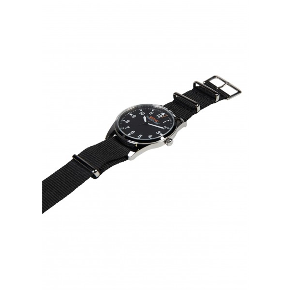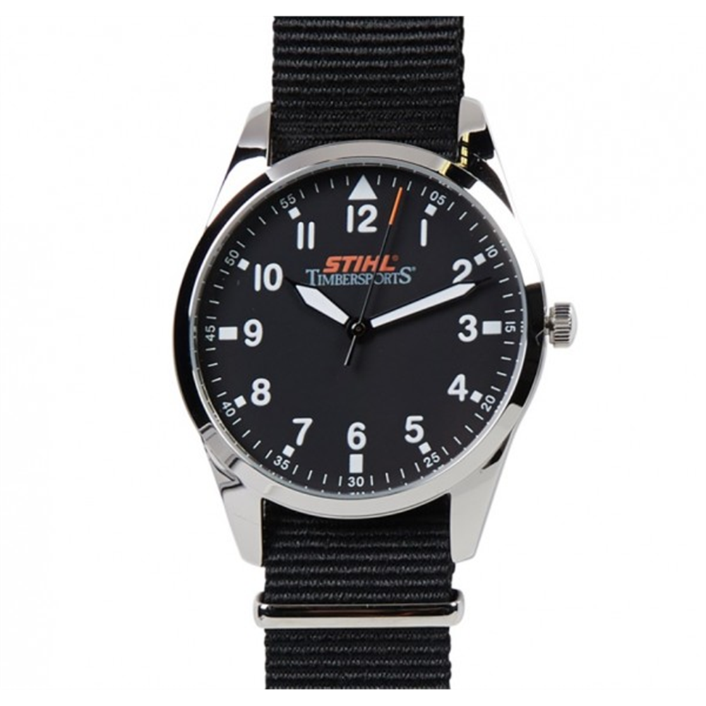 Ovaj ručni sat u STIHL TIMBERSPORTS® dizajnu je neophodan za aktivnosti na otvorenom. Kućište, napravljeno od punog nerđajućeg čelika, najlonski kaiš i staklo od kaljenog Crystex-a čine ovaj sportski sat posebno robusnim. Njegov minimalistički dizajn znači da se može nositi i kao klasični muški sat.
