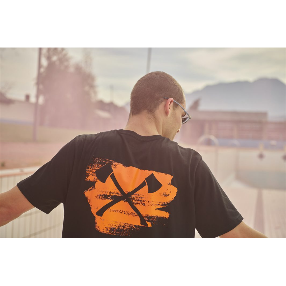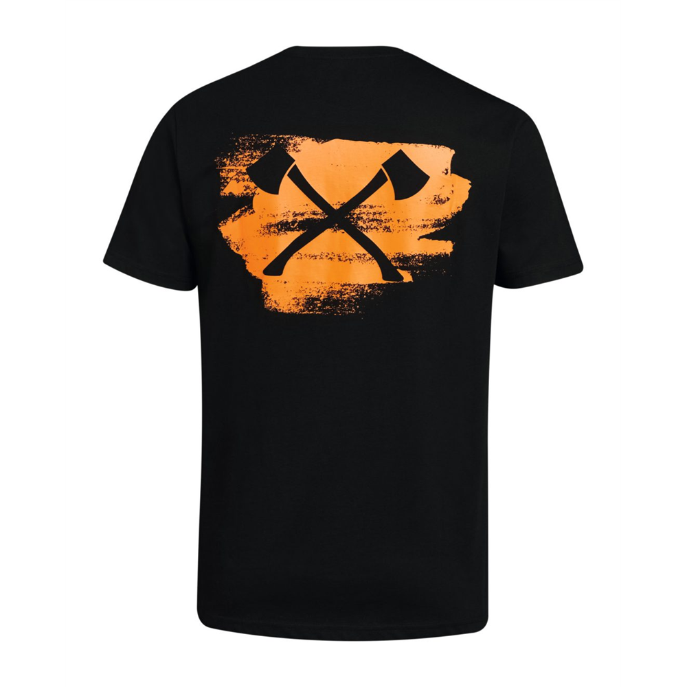 Izgrebana majica sa sekirom TIMBERSPORTS® Izuzetno prigušeno s prednje strane jasna izjava od pozadi. Majica dolazi u klasičnoj crnoj boji i ima dve ukrštene sekire na poleđini sa STIHL narandžastom podlogom.