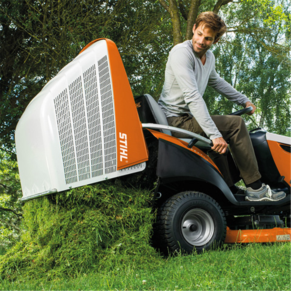 Kompaktni i pokretni STIHL RM 4082 traktor za košenje travnjaka je savršen ako želite da precizno kosite svoj travnjak. Zahvaljujući svom malom krugu obrtanja i neometanom prednjem izgledu, možete da radite sa naročitom efikasnošću, posebno u baštama sa drvećem, žbunjem i cvetnim lejama. Vozačko sedište se može pomerati i podešavati na udobnu visinu, bez alata. Duboki okvir traktora za košenje travnjaka garantuje montažu i demontažu bez napora. Uz samohod sa jednom pedalom, smer kretanja može se komotno menjati između kretanja napred i nazad pomoću poluge, radi olakšanog brzog manevrisanja. Oštrice platforme kosačice se takođe mogu sklopiti i rasklopiti vrlo lako sa kontrolne table. Kutija za sakupljanje trave kapaciteta od 250 litara može se lako otvoriti sa vozačkog sedišta povlačenjem lučne ručke, pri čemu se ostaci odsecanja potpuno izbacuju. Sistem za upravljanje hvatanjem garantuje najbolje moguće sakupljanje trave po celoj širini rezanja. Takođe možete opciono nadograditi ovaj traktor za košenje travnjaka pomoću umetka za malčiranje. Ovde se ostaci od trave ostavljaju na travnjaku kao prirodno đubrivo za podsticaj rasta travnjaka.