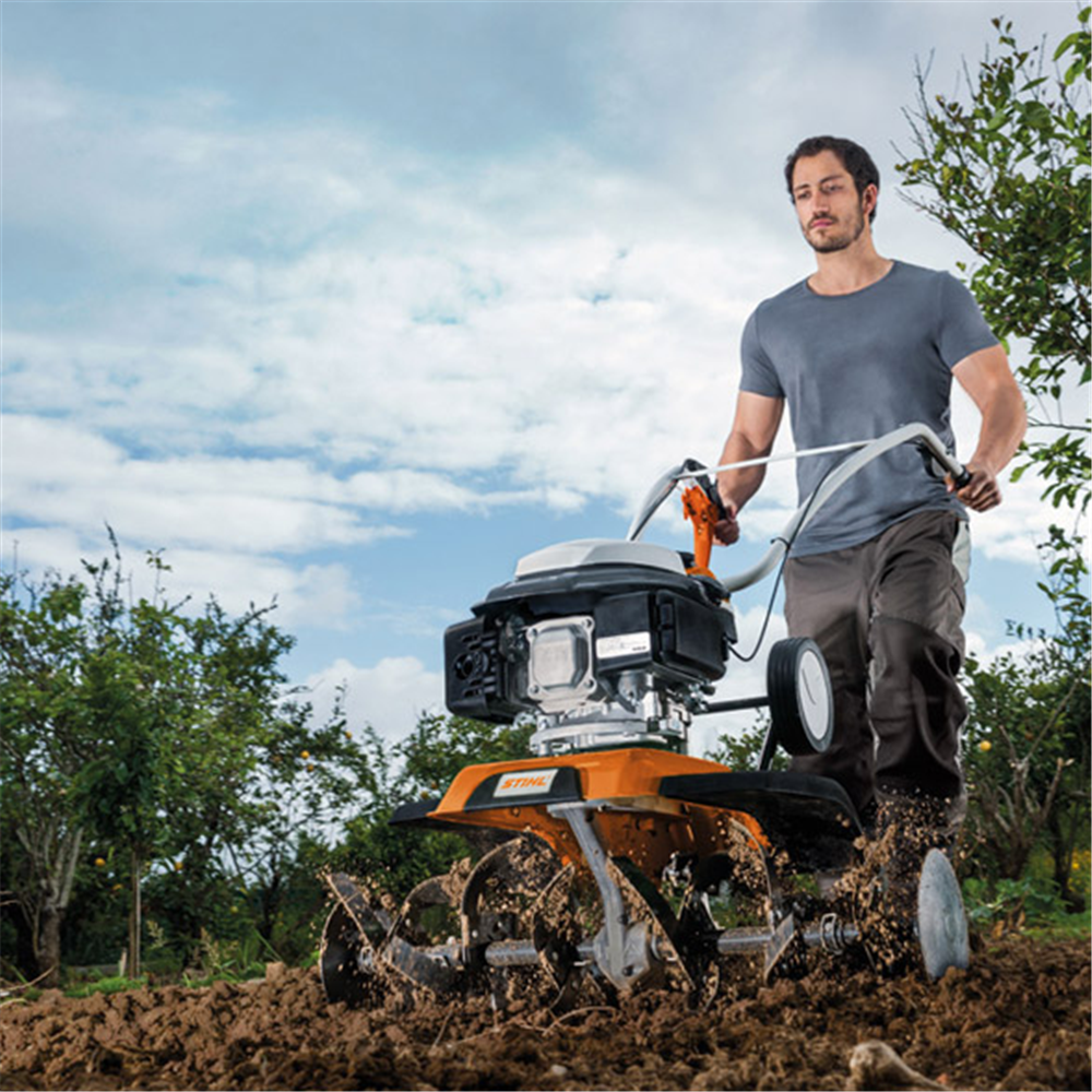 STIHL tiller MH 585 je svestrana višenamenska mašina idealna za zemljište srednje velicine i vecce zakrpe na vrtu. Motor je dovoljno snažan da se efikasno prevrcce na cvrstom terenu. Ovaj plug je savršen za stvaranje novih bašta i zelenih površina kao i za pripremu leja za povrtarske kulture. Da bi usevi što bliže bili smešteni i sa vecom efikasnošcu i pažnjom možete podeliti set motika MH 585.