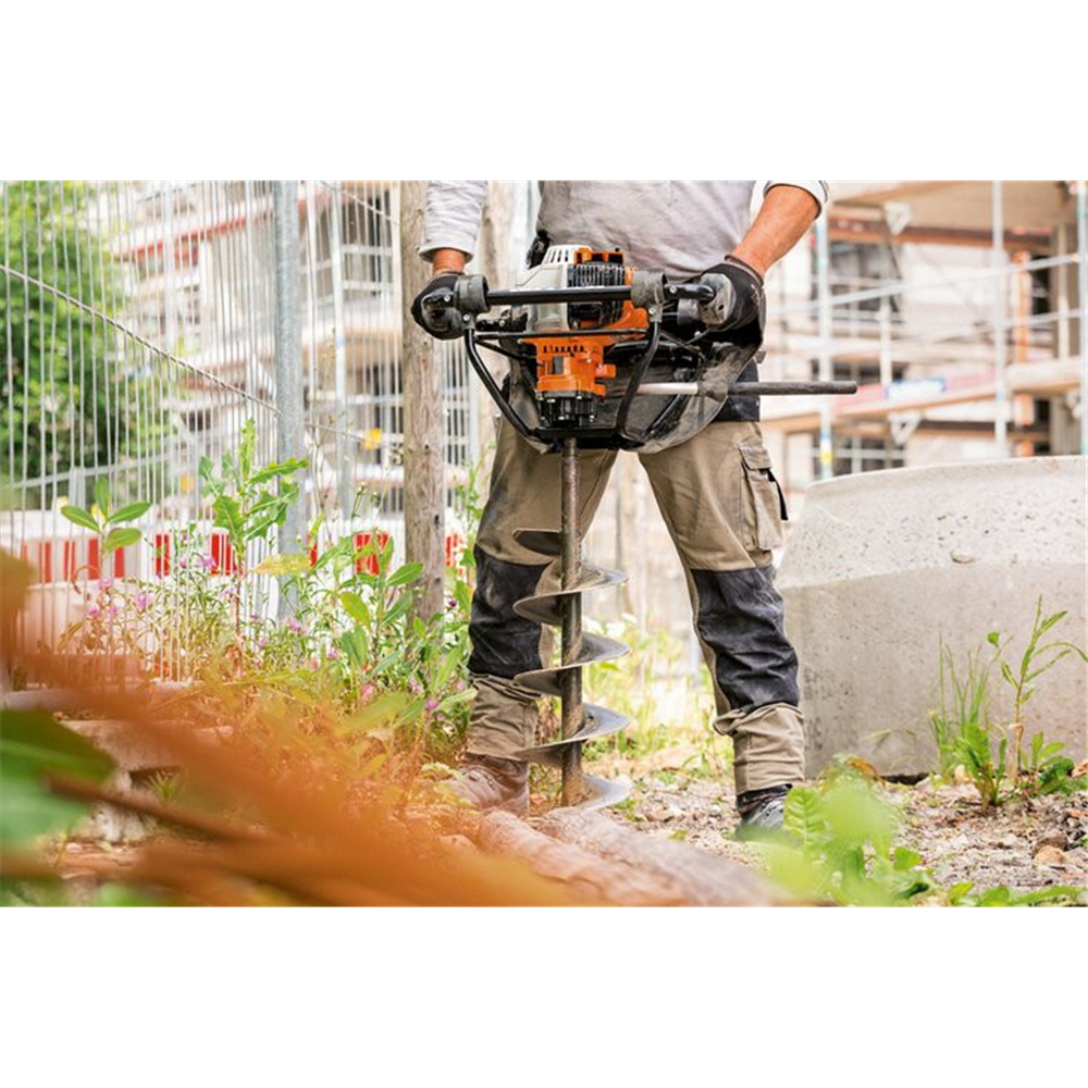 Uređaj za bušenje zemlje za jednu osobu sa velikom snagom izvlačenja 4-MIX® motorsa malom potrošnjom goriva niskim vrednostima buke i vibracija serijski sa QuickStop kočnicom burgije dugotrajnim sistemom vazdušnih filtera štitnikom. Isporucuje se bez burgije * cena je samo za uredjaj Zapremina cm3 36. 3 Izlazna snaga kW/KS 1. 4/1. 9Broj obrtaja vretena 1/min 200 STIHL 4 MIX motor Automatska dekompresija Quickstop kočnica Nizak nivo buke i vibracija Praktična ručka Štitnik na ramu Napomena: Maksimalna količina za poručivanje i prodaju je 3 kom.