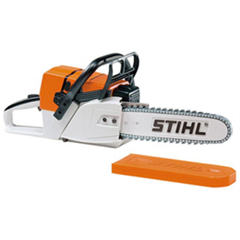 Dečija igračka motorna testera na baterije. 40 cm uključujući baterije torbu za alat štitnik za mač rezervni gumeni lanac i ključ za zamenu. Za decu uzrasta od 3 godine.