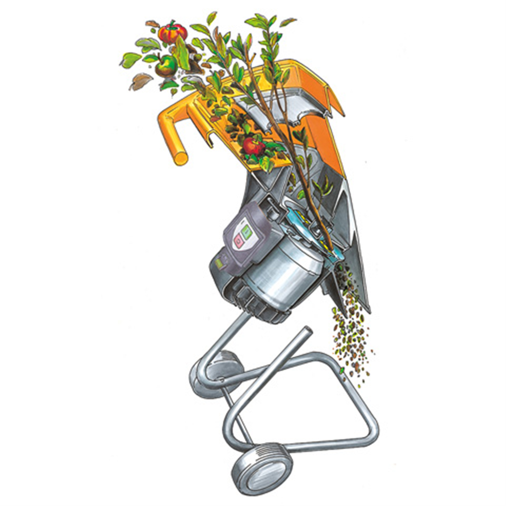 STIHL električni usitnjivač granja i lišća GHE 105 – Ova električna seckalica isporučuje obilje snage za fino seckanje grana i izraslina prečnika do oko 35 mm. U tu svrhu opremljena je svestranim Multicut 103 sistemom noževa kao i dvostranim otvorom za grane izdanke i meki materijal za seckanje. Posebno je pogodna za proizvodnju usitnjenog i kompostiranog materijala.