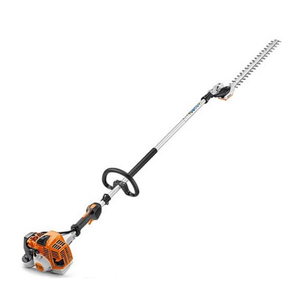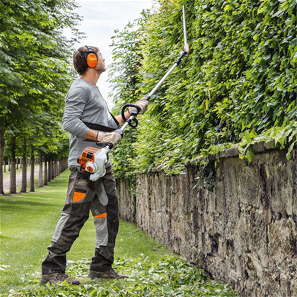 STIHL HL 94 C-E Mogućnost zaokretanja noževa za 145o stepeni ukupna dužina 242cm i mala težina olakšavaju rad kako na održavanju visokih živih ograda tako i za rad u blizini tla. Za profesionalni rad kako sa visokim živim ogradama tako i za upotrebu blizu tla. Redukator smanjenje težine sa ECOSPEED funkcijom za regulaciju broja obrtaja. Zapremina (cm3) 24 1 Snaga (KS) 1 2 Težina (kg) 6 1 Dužina preseka (mm) 600 Ukupna dužina (cm) 242 STIHL 2 MIX motor ErgoStart Mala težina i odličan balans Noževi sa mogućnošću zaokretanja Obostrano naoštreni noževi ECOSPEED funkcija Napomena: Maksimalna količina za poručivanje i prodaju je 3 kom.