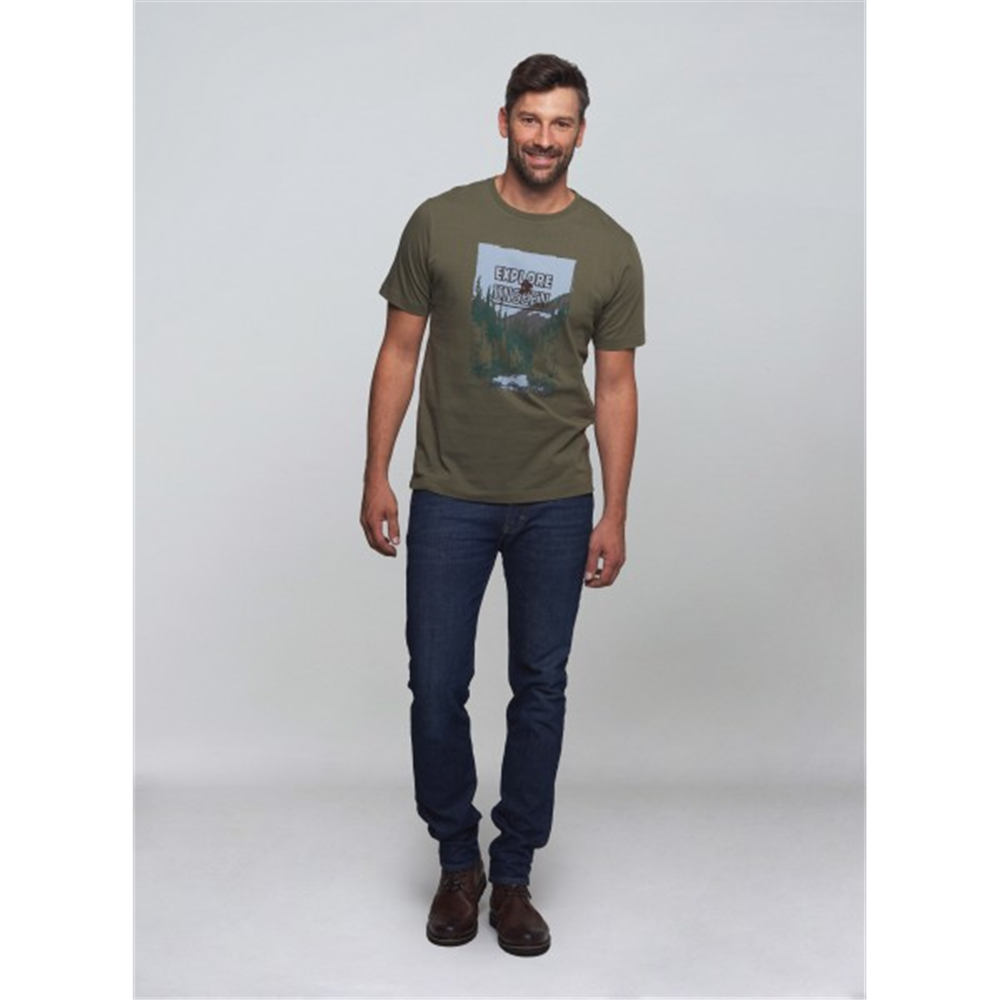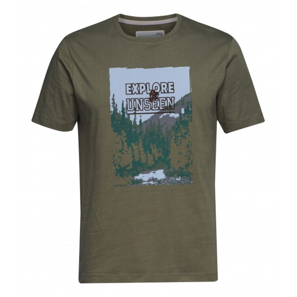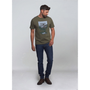 Majica za avanturiste. Tako da možete videti šta se događa izdaleka. Zelena majica s velikim prirodnim otiskom na prednjoj strani. 100% pamuk osigurava ugodan fit na svakoj ekskurziji.