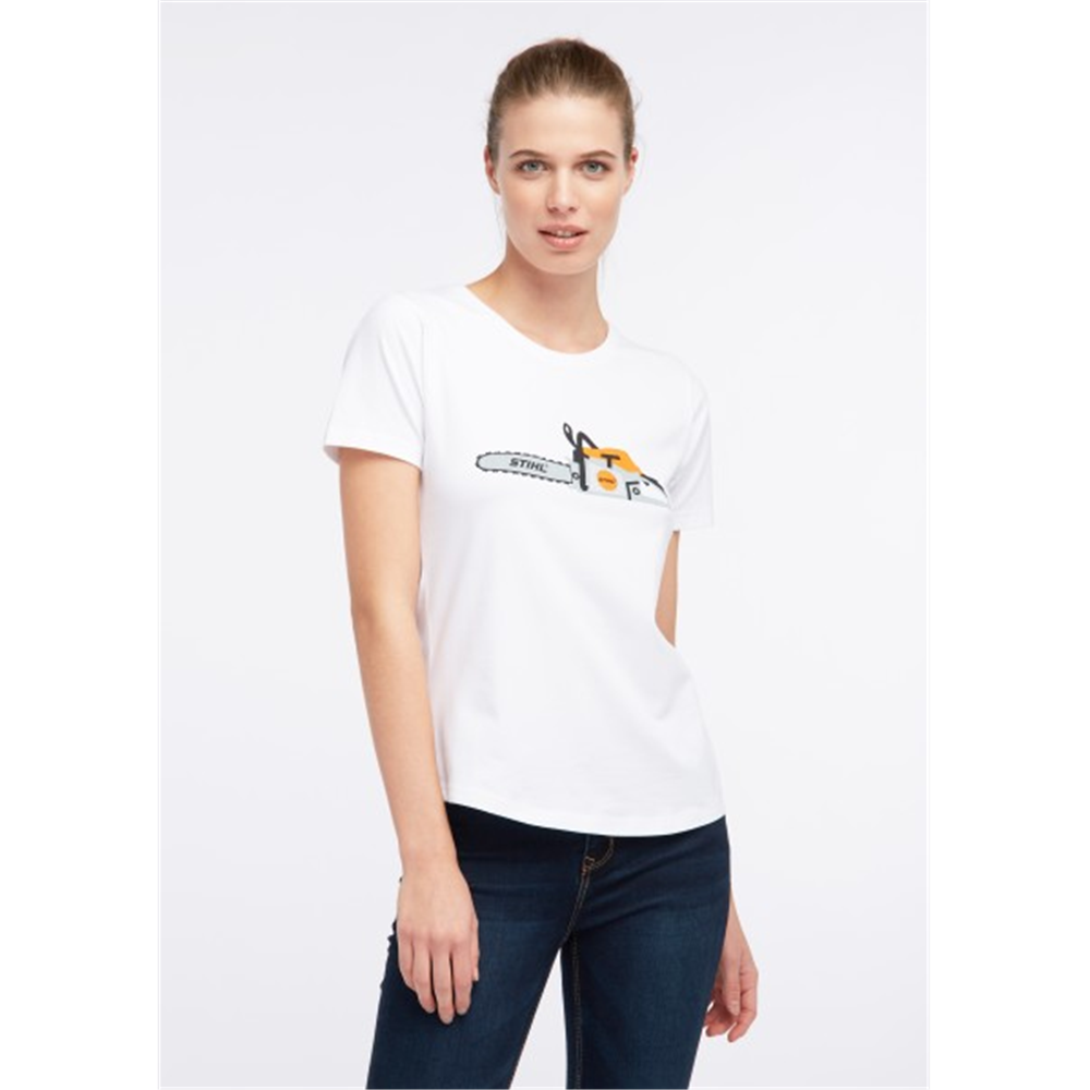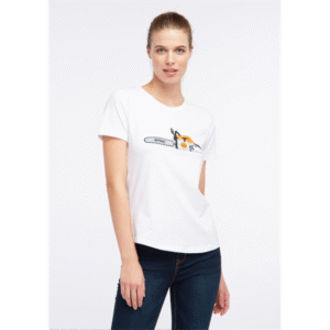 Snažan dizajn za jake žene: košulja izrađena od mekanog pamučnog miksa sa 5% sadržaja elastana savršeno se prilagođava figuri i dalje leže i ležerno. Obojeni otisak na prsima sa motornom pilom je apsolutna privlačnost očiju!