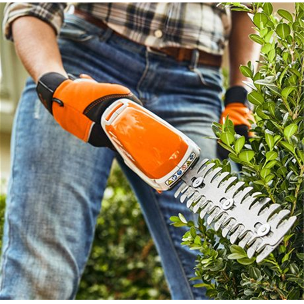 Lake i kompaktne baterijske makaze za orezivanje skraćivanje i negu manjih zimzelenih ograda i drveća. Noževi sa STIHL optimizovanom geometrijskom oštricom za optimalne rezultate sečenja takođe i sa noževima za sečenje ivica travnjaka. Drška otporna na klizanje i za savršenu ergonomiju brza zamena sečiva bez alata sa prikazom nivoa napunjenosti baterije da biste u svakom trenutku imali uvid u kapacitet baterije.