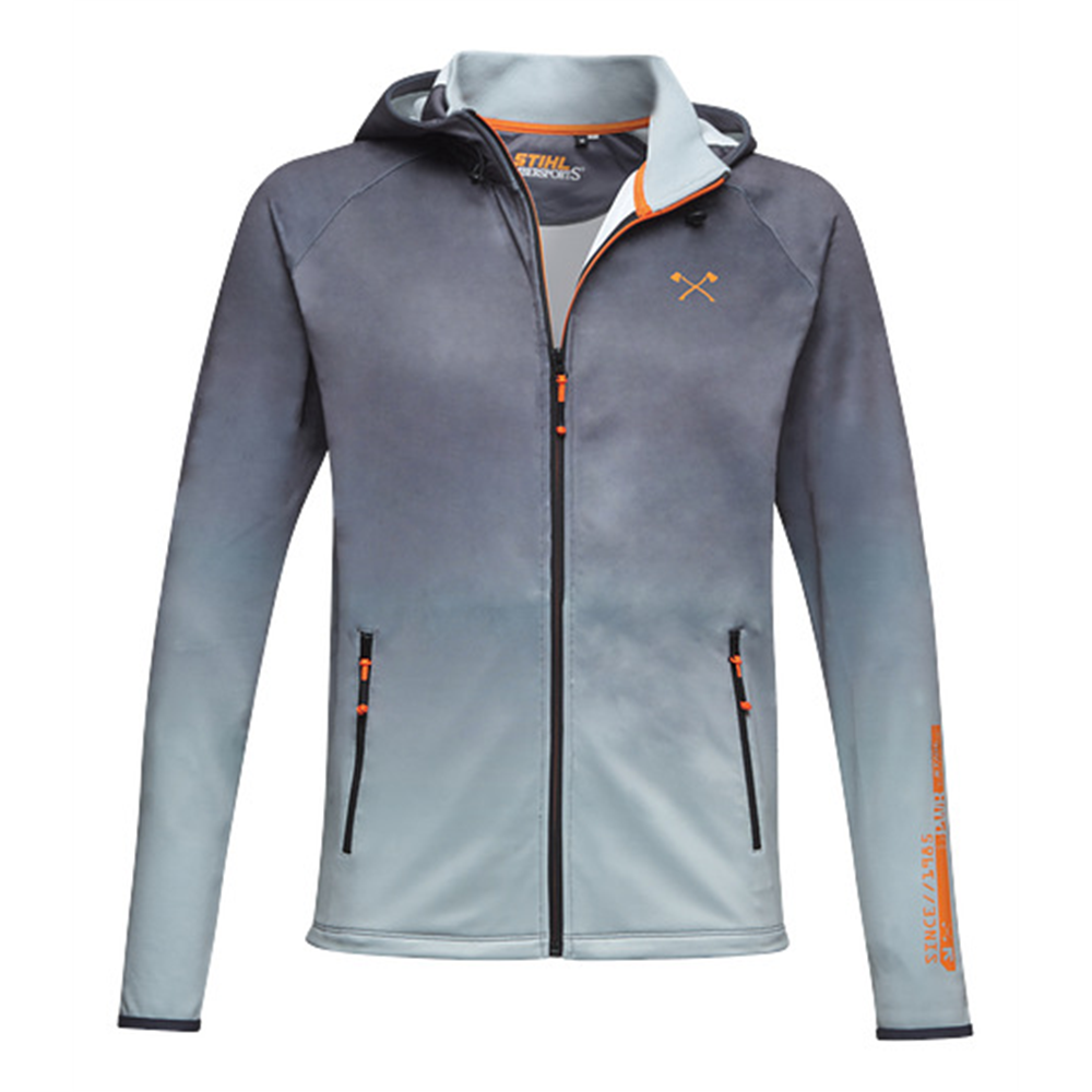 STIHL muška sportska dukserica iz kolekcije TIMBERSPORTS GRADIENT Napravljena od 95% poliestera i 5% elastina STIHL sportska dukserica za muškarce je savršen pratilac za svaku aktivnost. Sa nijansama boja od tamno do svetlosive i malim ukrštenim sekirama na grudima bićete neizostavni. Narandžasti STIHL TIMBERSPORTS® logo na rukavu je naravno obavezan.