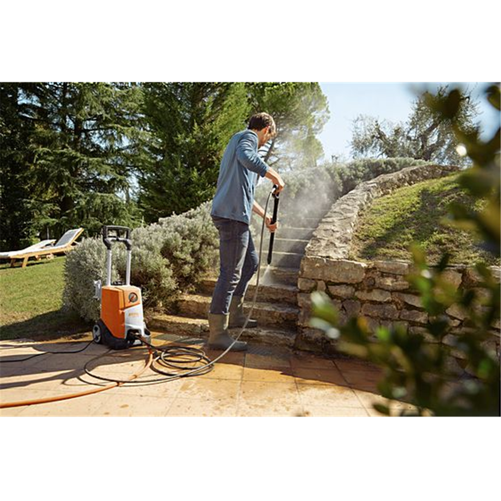 Pogodan čistač visokog pritiska sa dodatnim funkcijama. Aluminijumska glava pumpe indukcijski motor bez cetkica integrisani komplet tocka set sredstava za cišccenje rotirajucca mlaznica podesiva mlaznica ventilatora sa regulacijom pritiska brzo-otpuštanje spojnice na okidacu i alatu parkirno mesto za iskljucivanje prskalice prilikom odmora 7 m visokotlacno crevo transportna rucica posebno duga raspršivacica sa mekom ruckom za praktican rad aluminijumska teleskopska rucka odeljak za odlaganje sa strane sa integrisanom mlaznicom i naponskim kablom.