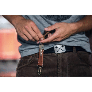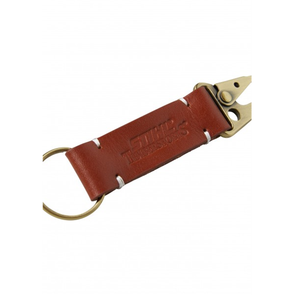 Privezak za ključeve dolazi u trendi vintage izgledu. Držač za ključeve napravljen je od prave kravlje kože i antiknog mesinga s iskorištenim izgledom i 100% je bez nikla. Utisnuti STIHL TIMBERSPORTS logotip daje privezak ključeve vrlo poseban izgled.