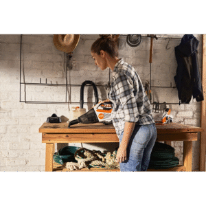 NOVO – Dostupno od proleća 2022! Praktični baterijski ručni usisivač za usisavanje i čišćenje manjih suvih površina u garaži radionici ili automobilu. Sa uklonjivim kontejnerom za sakupljanje za lako pražnjenje i čišćenje. Mlaznica sa pukotinama i univerzalna mlaznica sa uklonjivim nastavkom za čekinje za različite primene. Rešenje za zaključavanje omogućava kontinuirani rad bez pritiskanja ručice prekidača.