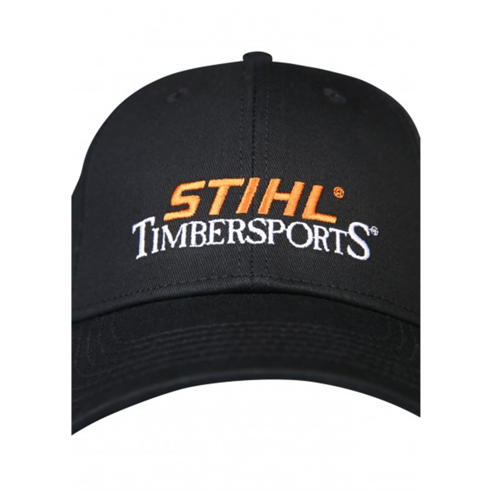 Svedeno na osnovno! Crna STIHL TIMBERSPORTS® bejzbol kapa izrađena od čistog pamuka vezena je velikim STIHL TIMBERSPORTS® logotipom. To je jednostavna ali značajna obaveza za svaku posetu šampionatima!