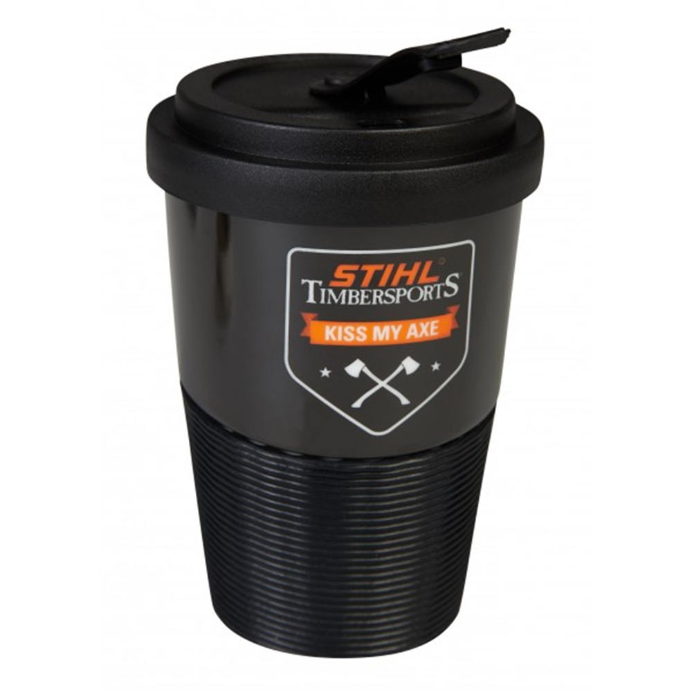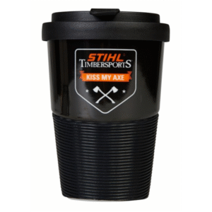 Porculanska šolja za kafu u dizajnu STIHL TIMBERSPORTS ne samo da izgleda dobro već je i praktična: Sa zapreminom od 300 ml poklopcem i drškom napravljenim od izolacionog silikona šolja za kafu za višekratnu upotrebu svako piće ostaje vrućim.