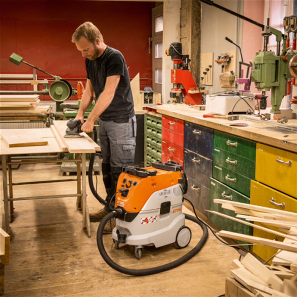 Efikasan usisivač za mokro/suvo usisavanje sa automatskim uključivanjem za klasu prašine M. Automatsko čišćenje filtera bez gubitka usisne snage automatsko nadgledanje zapreminskog protoka kontinualna regulacija broja obrtaja sa držačima za prihvat dodatne opreme antistatička oprema za usisavanje iza električnog alata. Maksimalni podpritisak mbar 250 Količina usisanog vazduha l/min 4.